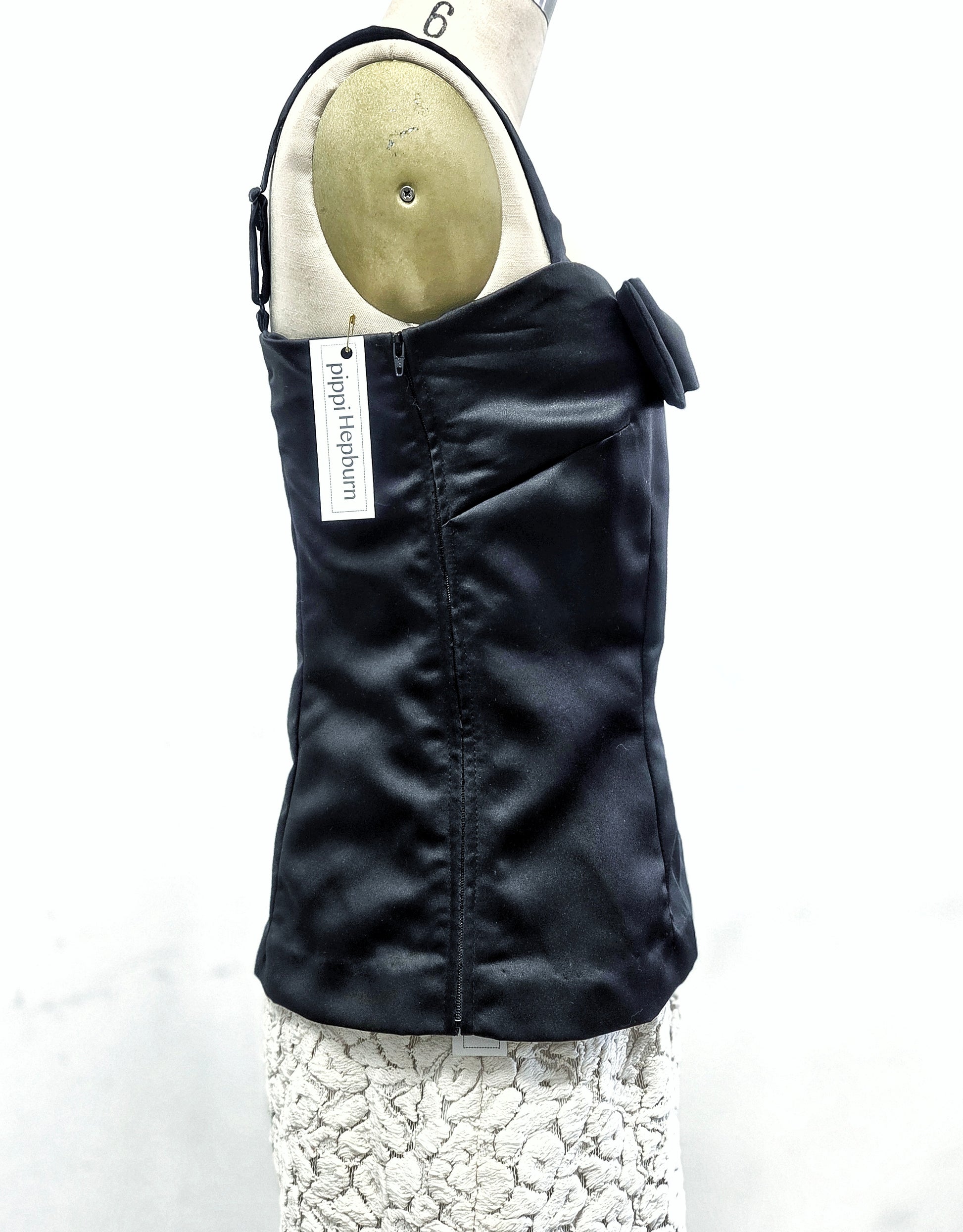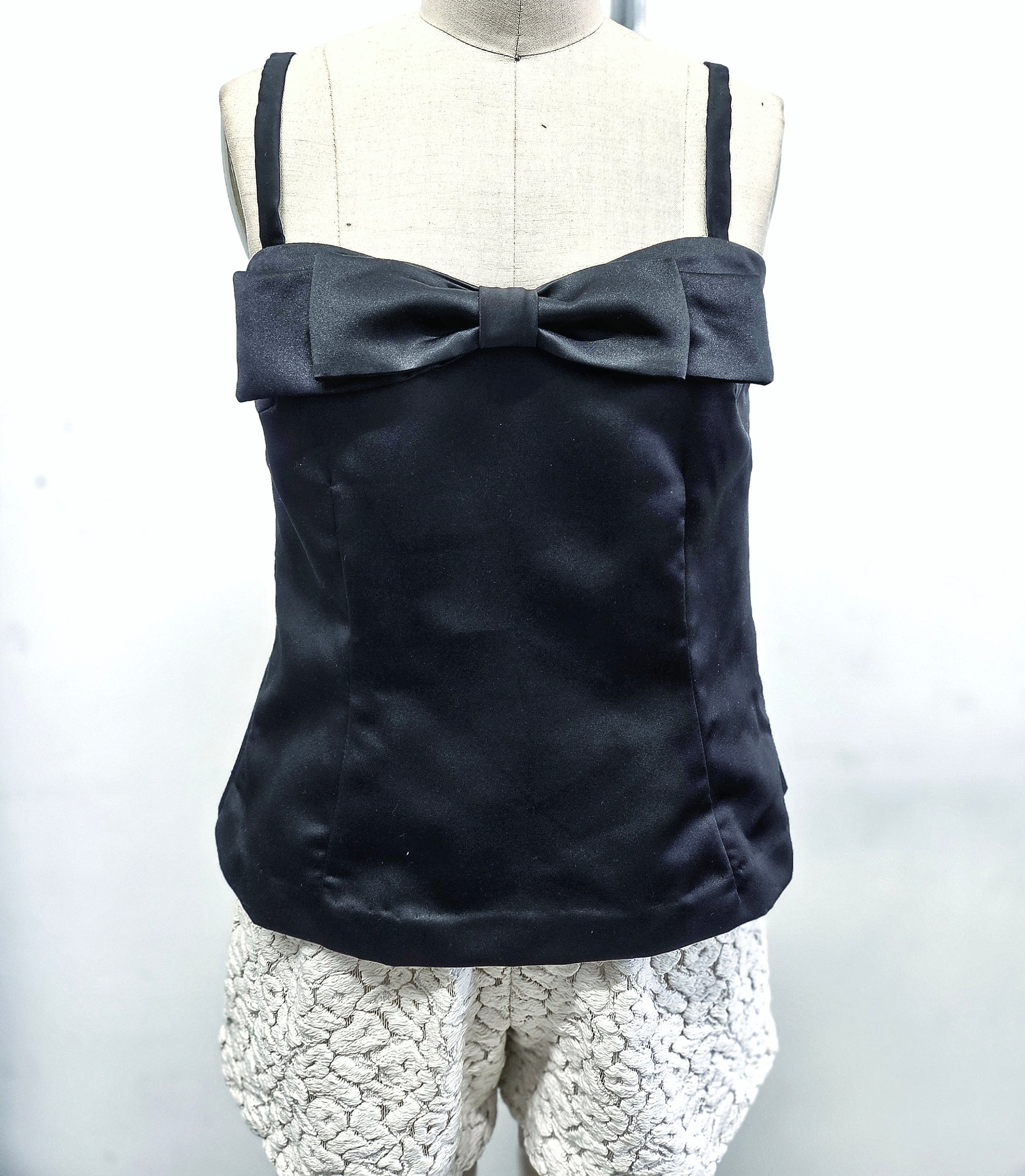 Sophisticated skinny straps top with a center front bow at sweetheart neckline