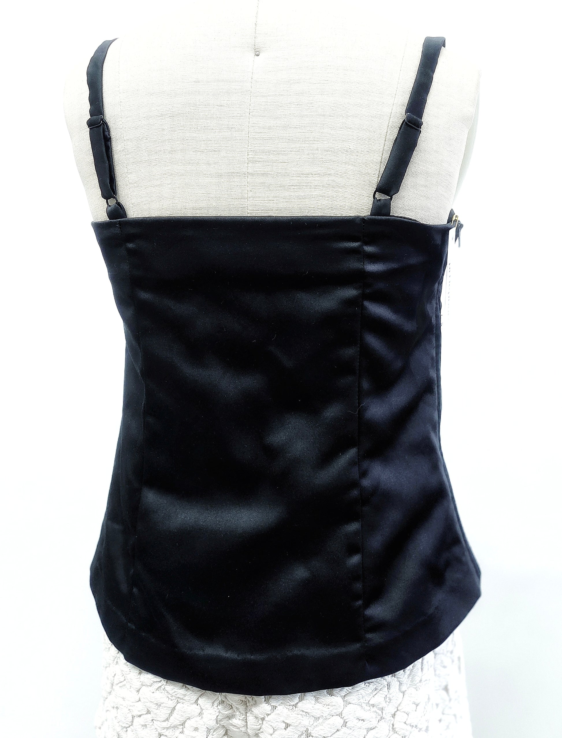 WASH CARE INFO: Turn top inside out and wash using a delicate cycle with cold water. Do not use bleach. To dry, lay flat or hang to air dry to prevent damage to satin. Iron on low heat.